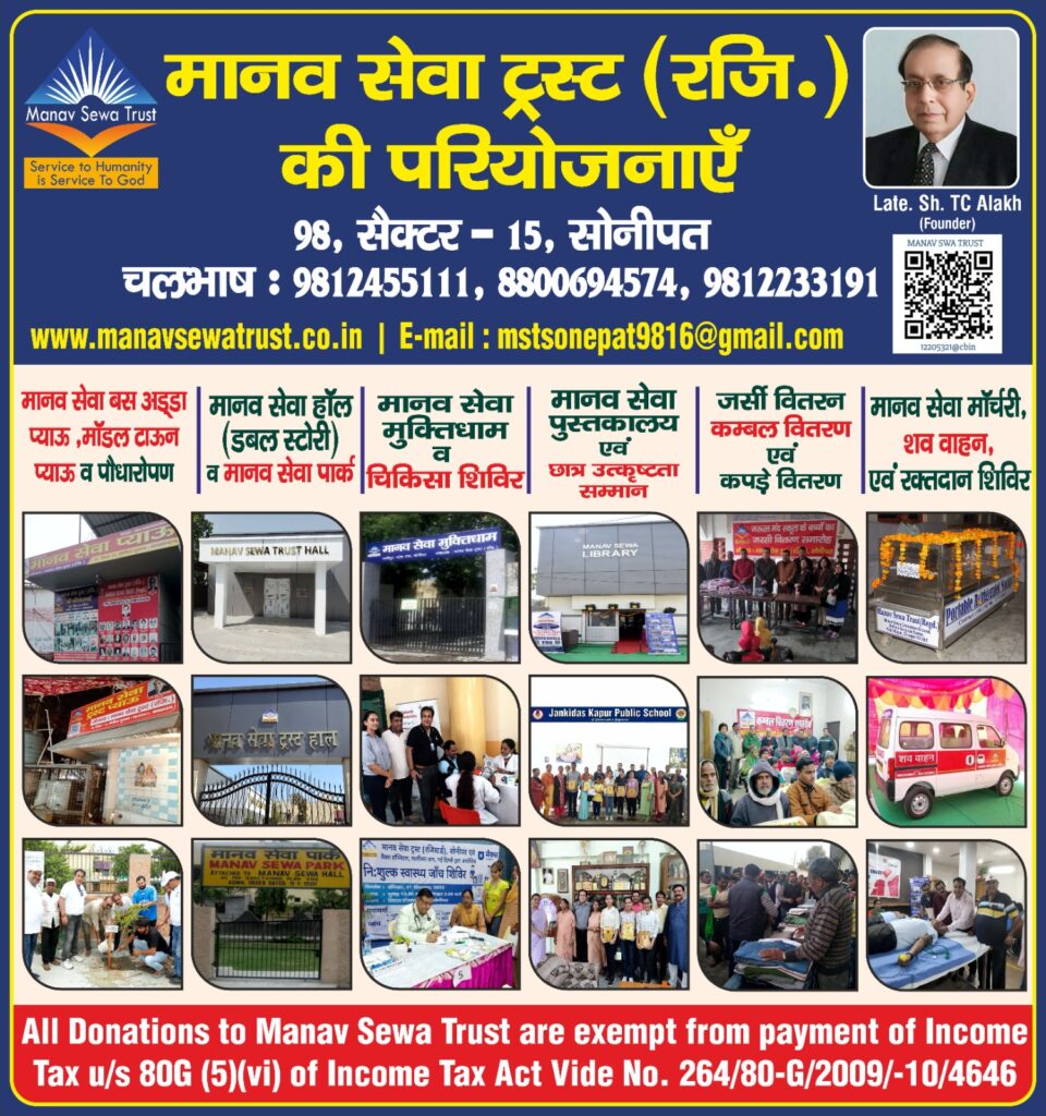 Social organization thriving on government aid are legion but rarely does one come across a small organization that has setup several valuable community benefit projects without looking to the govt. for financial help. Manav Sewa Trust(Regd.) is fully dependent on public donations for running the projects and meeting day to day expenses.